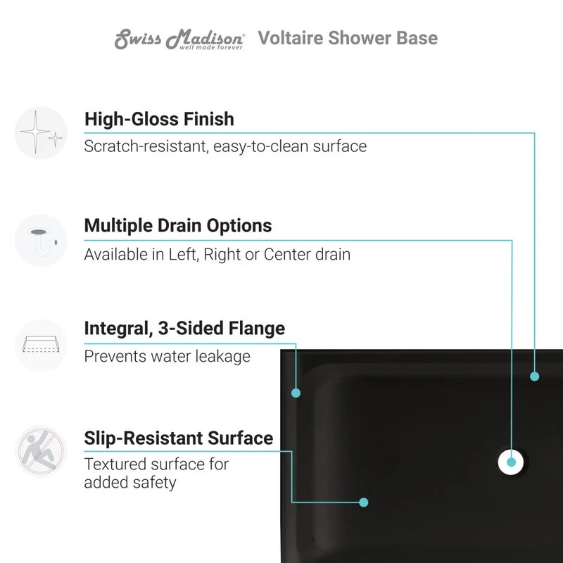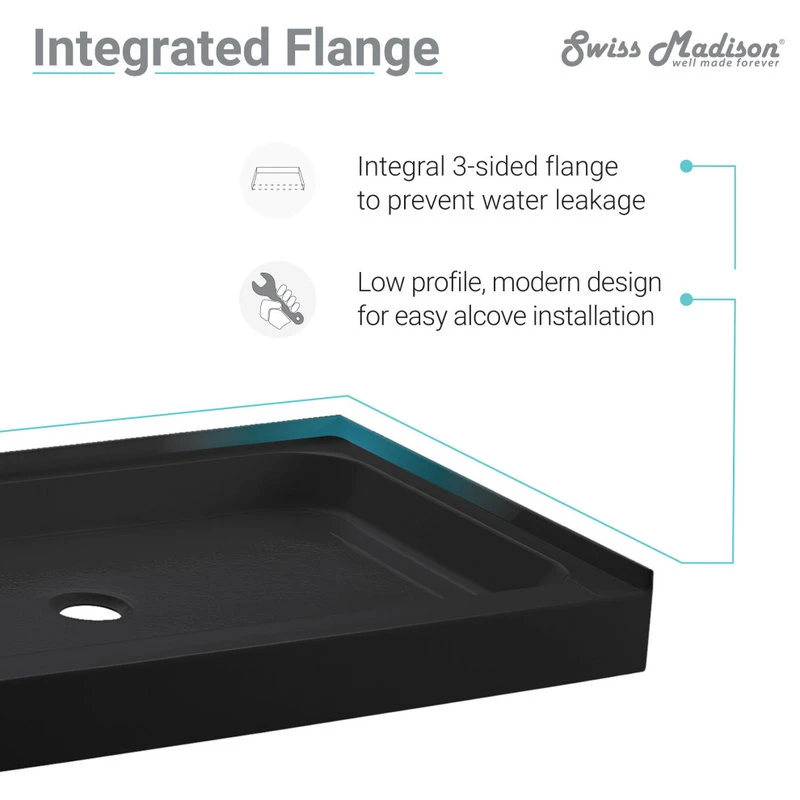 Best Pirce ???? Swiss Madison Voltaire 48″x36″ Acrylic Black, Single-Threshold, Center Drain, Shower Base ????