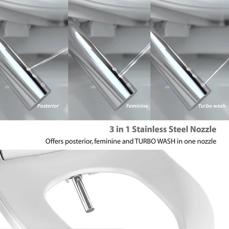 - Equipped with premium bidet features and a self cleaning stainless steel nozzle