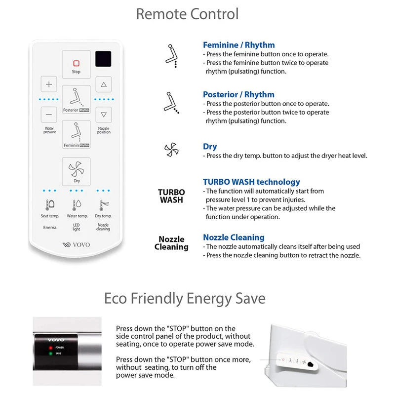 - Smart remote controller to perform posterior, feminine, and turbo wash functions